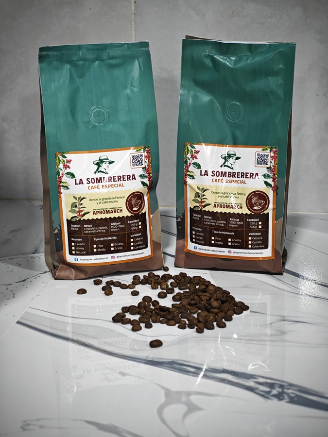 Para el año 2030, APROMARCH será reconocida como una organización cafetera modelo en el departamento del Tolima, con una base social sólida, jóvenes empoderados y procesos productivos sostenibles. Contará con canales de comercialización consolidados que le permitirán exportar café de alta calidad a diversos destinos internacionales, garantizando trazabilidad, excelencia y confianza en cada grano. Su marca de café tostado La Sombrerera será símbolo de identidad cultural y calidad diferenciada, posicionándose como referente regional por su sabor, historia y compromiso con el desarrollo rural.
